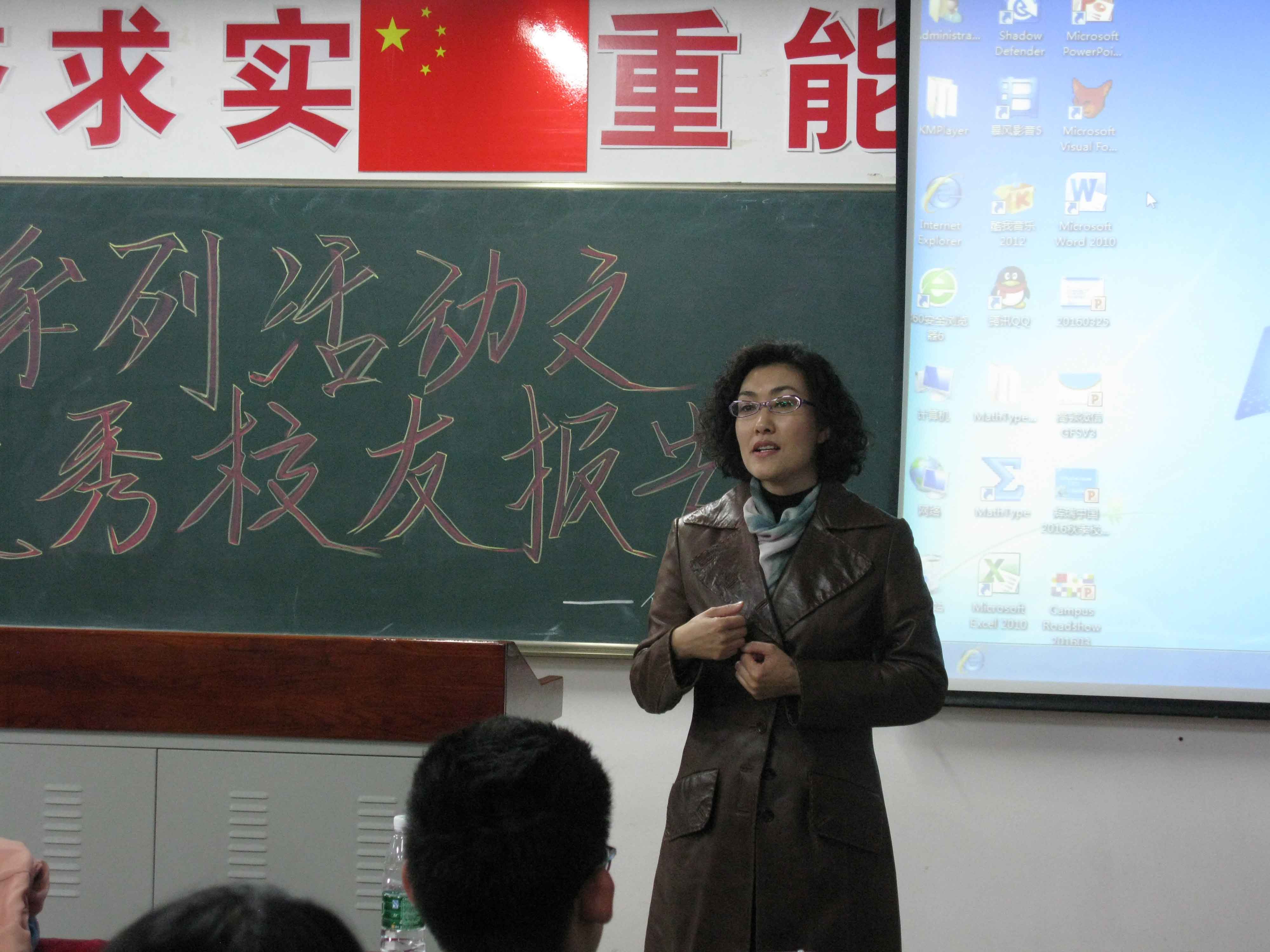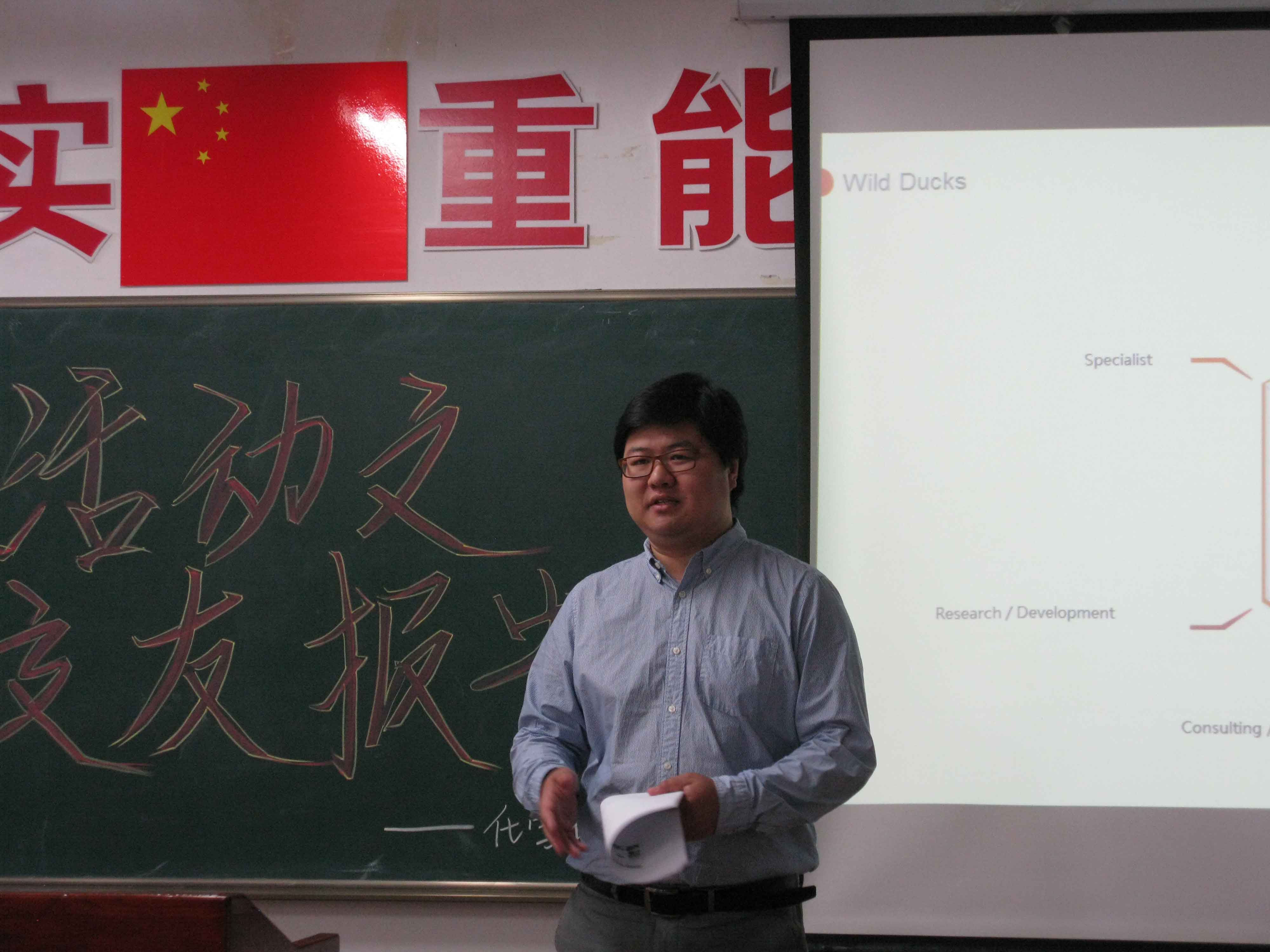 施阳校友以轻松的语气,向大家分享他的个人的经历和心得体会。全过程中用英文ppt对毕业求职的渠道,毕业简历的设计,到面试的技巧等等进行了细致的讲解,无不深深吸引每一位在座的学生。最后根据自身经验向大家分享了学习、工作生涯的重要8个字:激情、勤奋、冷静、自信。吕宜男女士也分享她的个人经历并播放辉瑞集团的发展史。在随后的提问环节,施阳校友热心细致的回答了同学们提出的每一个问题,并对提问的同学赠送了的精致礼物。接下来,王秋教授送给同学们三句箴言:一、机会垂青有准备的人;二、学习是一生的事情;三、迷茫的时候要做好眼前的事。这让许多同学受益匪浅。最后,杨梅院长代表学院总结本次报告,向优秀校友的到来表示感谢,告诫同学们要树立远大目标加上坚持不懈的努力就一定能够成功。