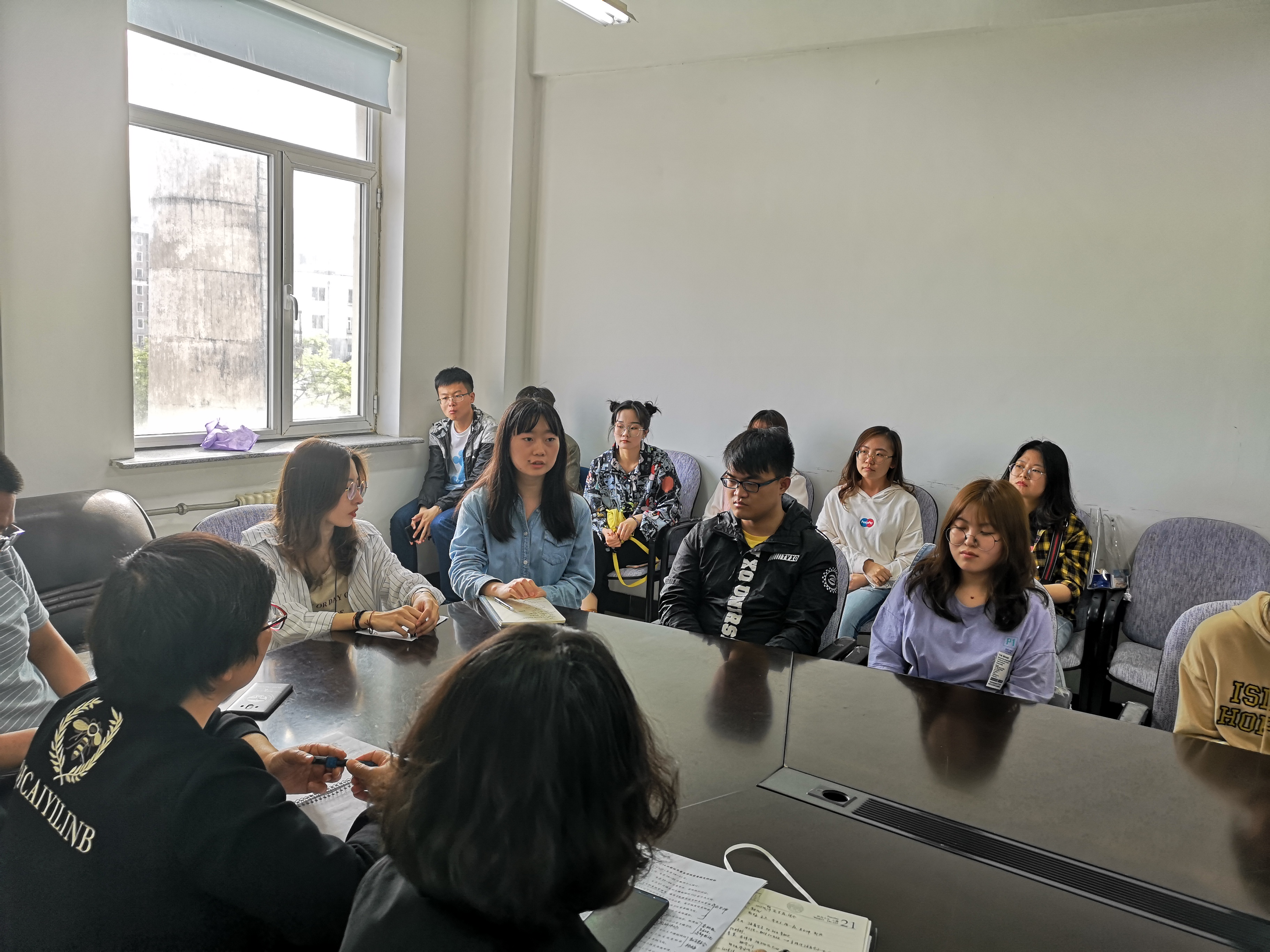 2019届师范专业毕业生座谈会在理化楼C区522室召开。学院党委副书记李金英、教学副院长金晶、团委书记苑朋栋,专业教师杨梅、李杰兰、石玉坤、郝强、徐一鑫及2019届师范专业毕业生代表参加了会议。会议由学院党委副书记李金英主持。