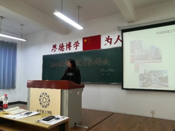 2016级化学(师范)专业教育实习总结会在理化楼C411举行。院长王长生、副院长金晶、党委副书记李金英、化学专业负责人杨梅、化学教育研究所所长王秋、实习带队教师白凤英、黄翠英、单文娟、朱江、李书实、王立新等老师及2016级化学(师范)全体实习学生出席总结会。大连市第四十八中学高一年级主任徐香琴老师作为校外实习指导教师代表应邀参加了本次活动。会议由王秋老师主持。