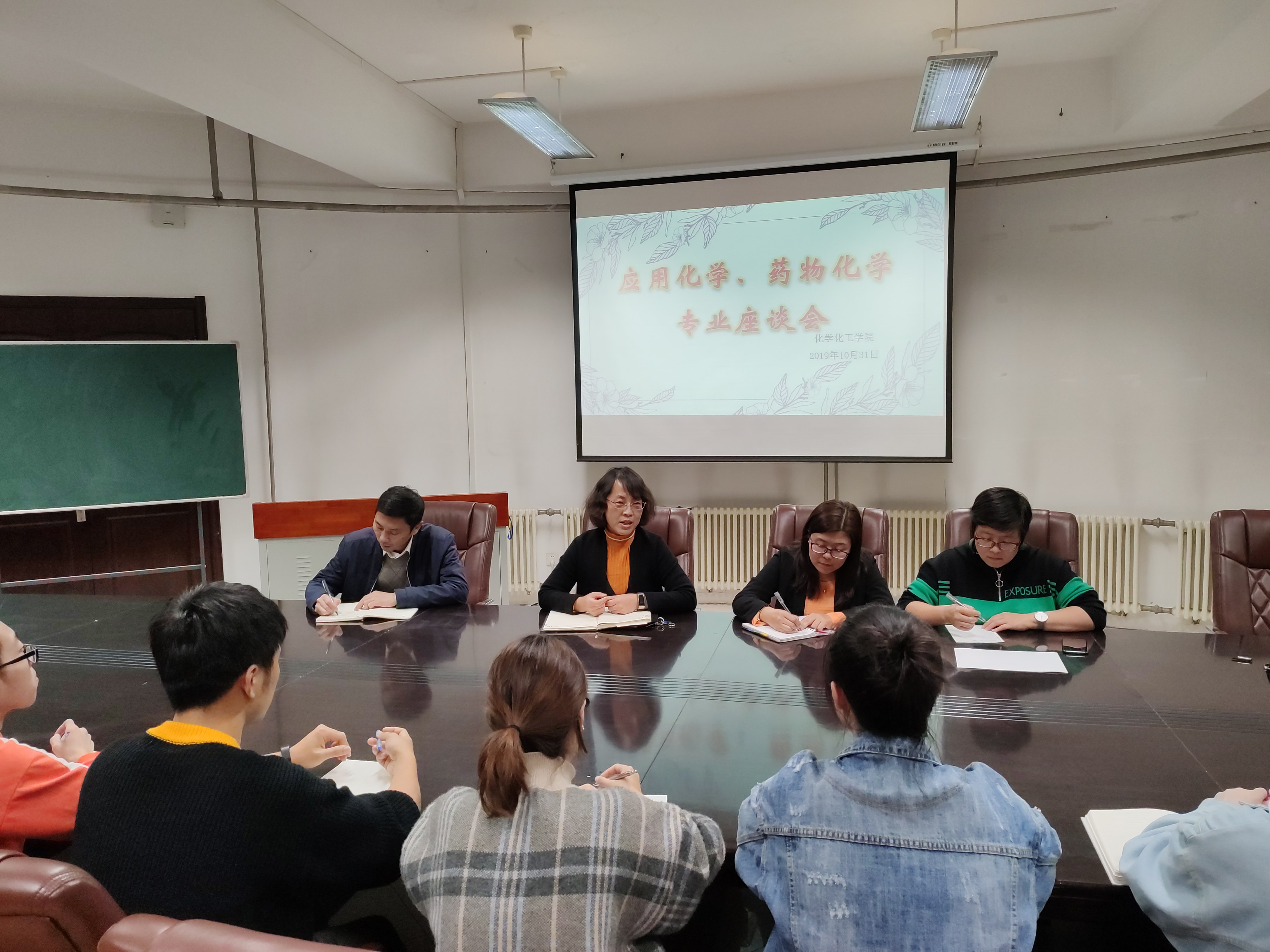 先后举办师范专业、非师范专业学生座谈会。学院党委副书记李金英、教学副院长金晶、化学专业负责人杨梅、教师教育研究所所长王秋、应用化学系主任李杰兰、药物化学系主任徐缓、本科生导师迟玉贤和张琳、任课教师代表刘翠、郝强、徐一鑫以及辅导员苑朋栋参加了座谈会。