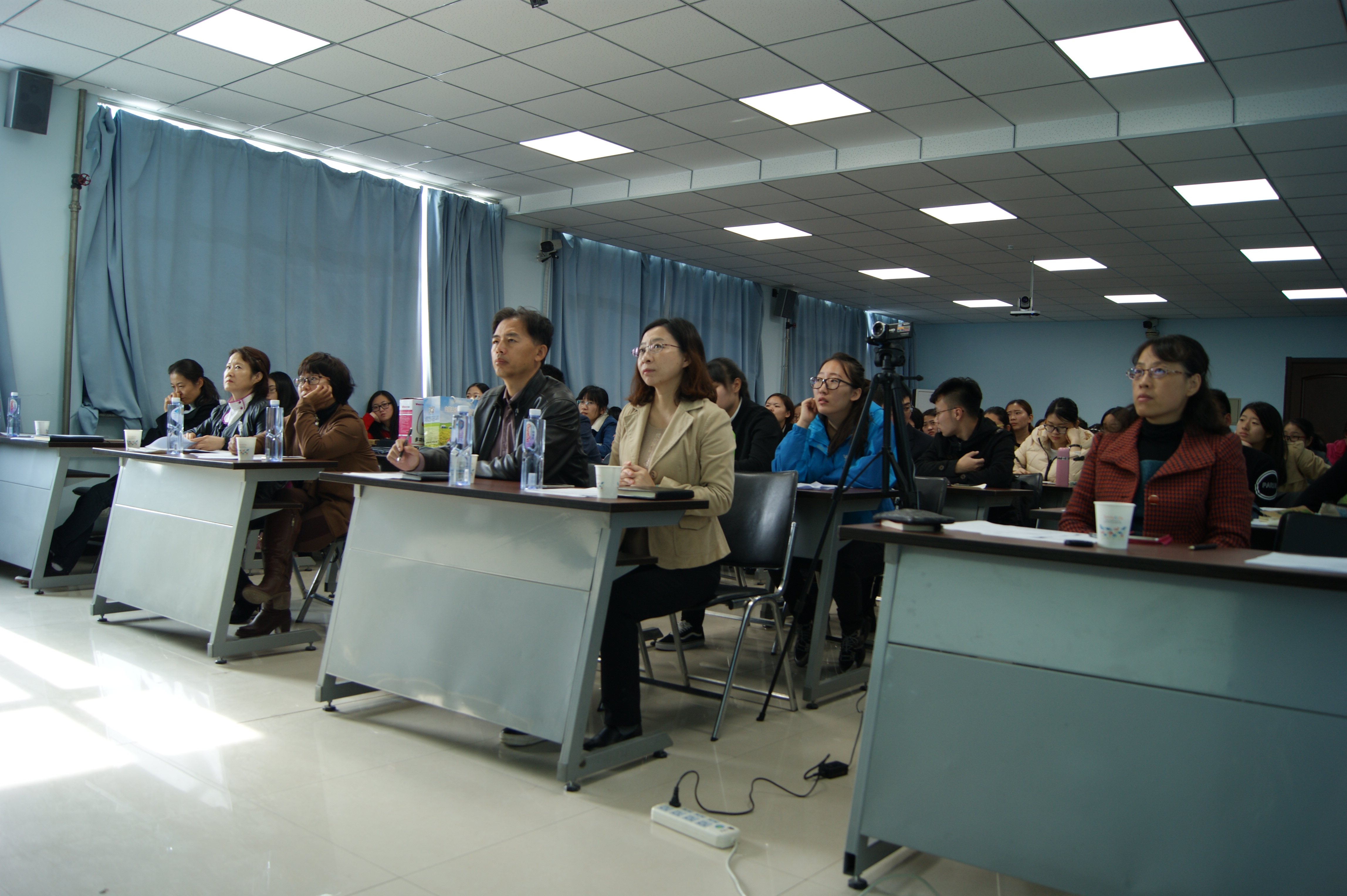 黄翠英和高峰老师担任评委,共同参与了整个比赛过程。比赛中共有9名选手(其中2名选手是大三同学)参加比赛,比赛过程中选手们讲课思路清晰,教态自然,板书工整,时而慷慨激昂,时而循循善诱,展示了自己良好的课堂教学风貌。比赛结束后梁志红老师和于欣老师对各位比赛选手进行了精彩点评。经过评委的共同协商评定,都京、张珊、吴镛峰荣获一等奖,郑涵文、陈佳、刘静、张宇荣获二等奖,于美璇、王洁荣获三等奖。