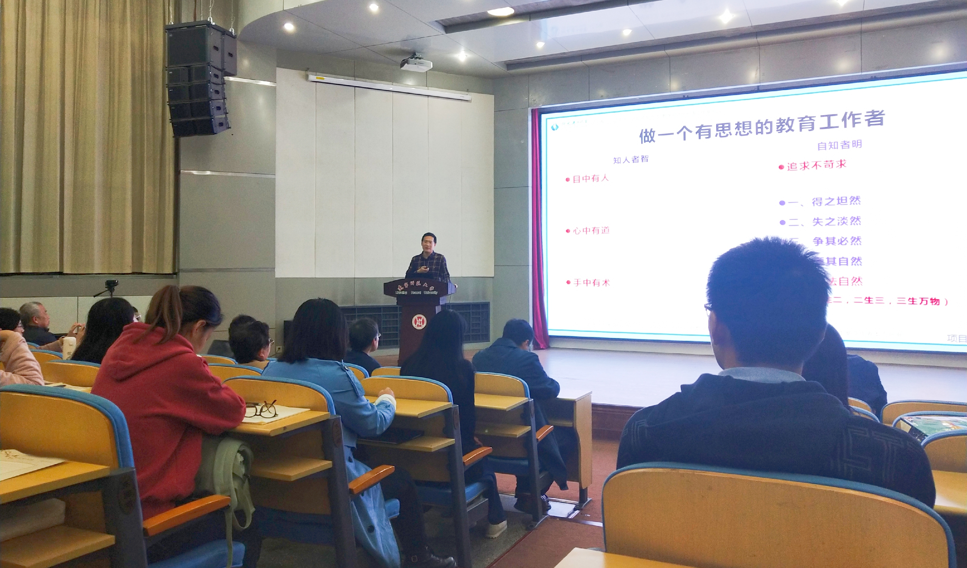 报告最后,何老师期望大家做到目中有人、心中有道、手中有术,拥有追求不苛求、得之坦然、失之淡然、争其必然的情怀。祝愿所有学生找到理想工作,所有老师再创教学佳绩。
