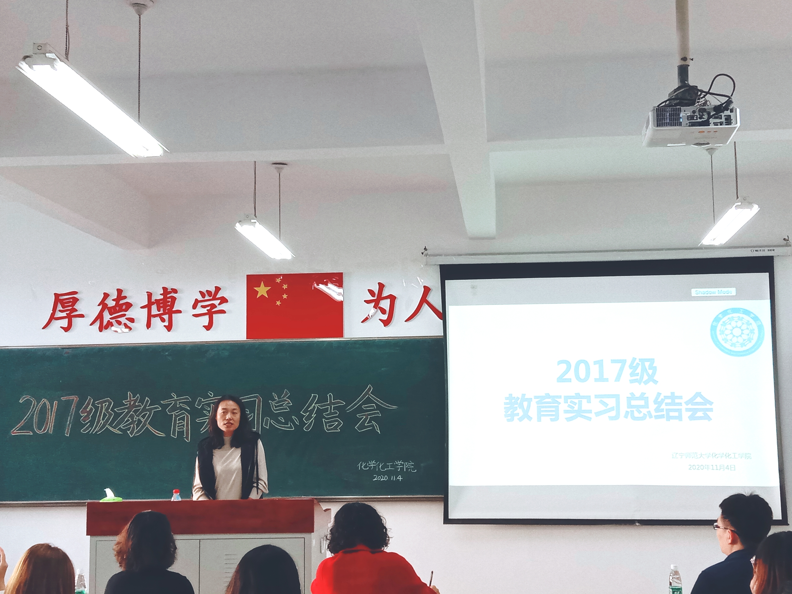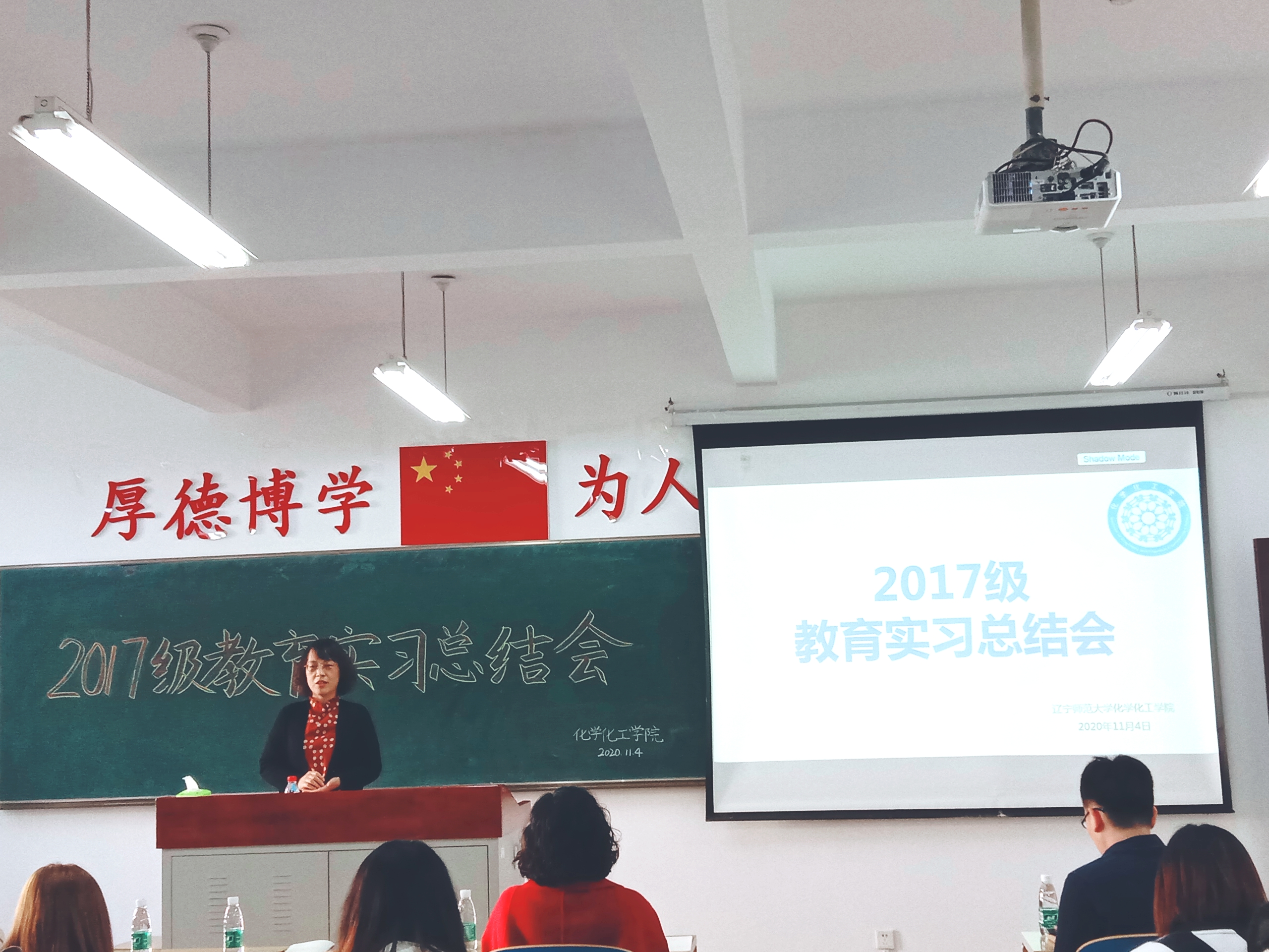 2017级化学(师范)专业教育实习总结会在理化楼C411举行。副院长金晶、化学教育研究所所长王秋、教育实习指导教师赫春香、黄翠英、单文娟、李书实、王立新等老师及2017级化学(师范)专业全体实习生出席了本次总结会。会议由李书实老师主持。