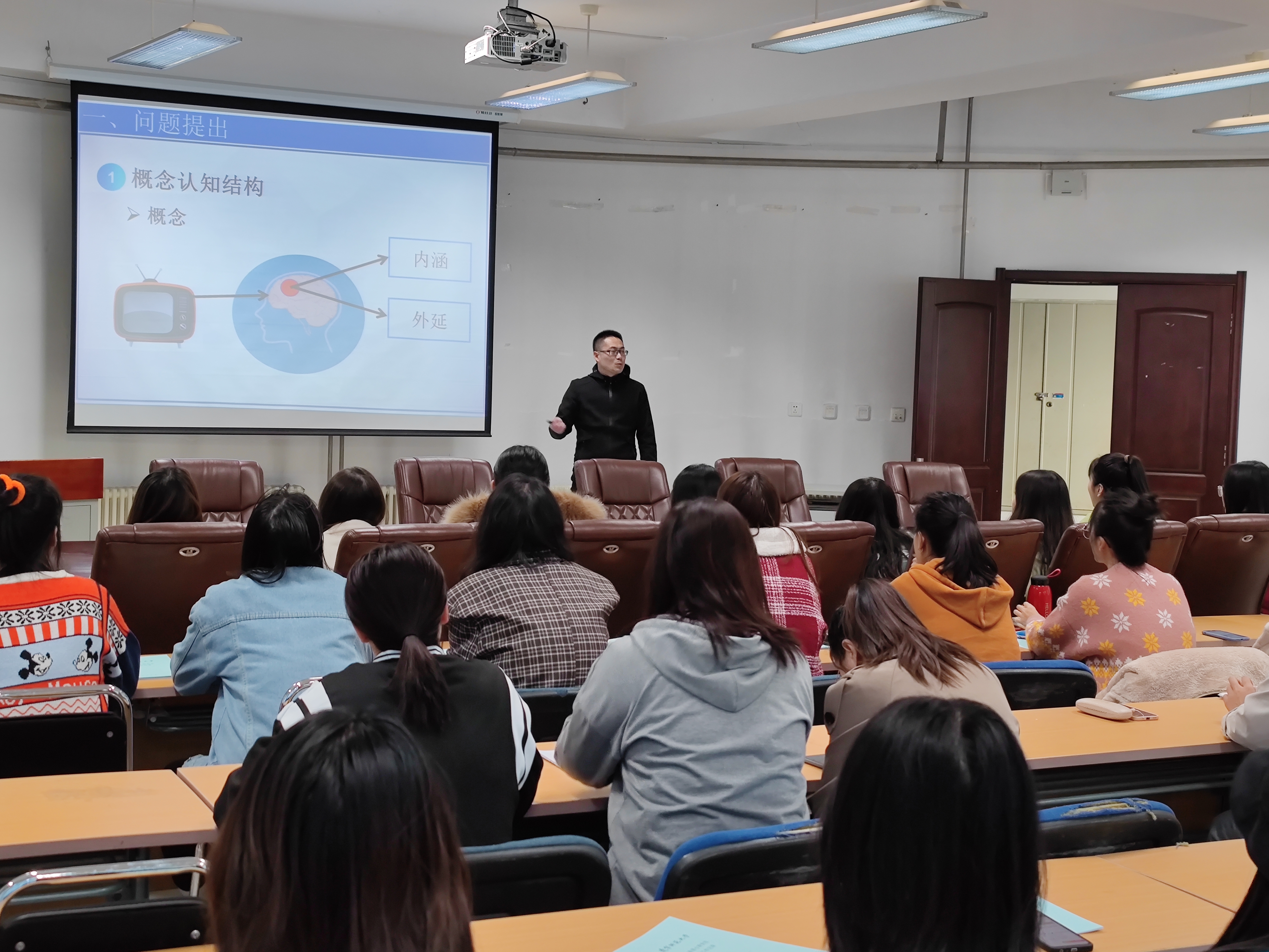王立新老师在报告中介绍了认知心理学领域概念认知结构研究的现状与发展趋势,并将课题研究内容分成“概念群确定”、“概念权重结构研究”、“概念贮存结构研究”和“概念语义间距研究”四个部分,与在场师生进行了广泛深入的交流讨论。