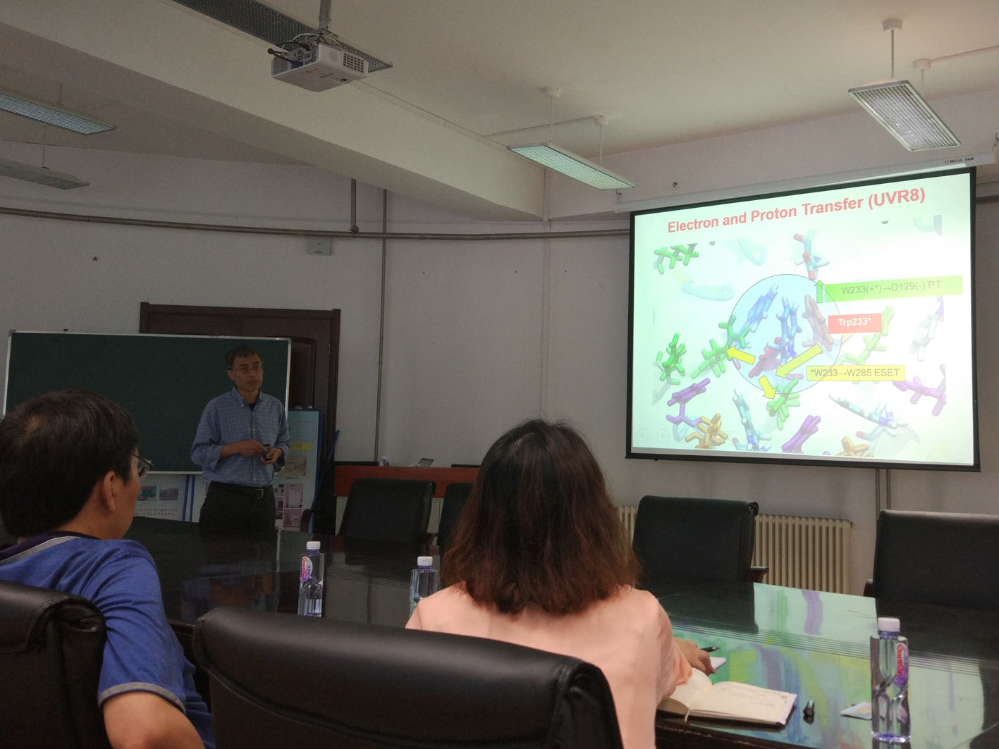 四楼会议室进行了题为“Dimer dissociation mechanism of a photoreceptor protein from multistate DFT simulations ”的报告。该报告全程由红桃视频