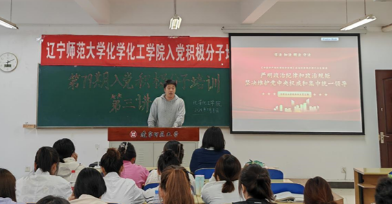 杨冠云老师分别从严重政治问题资料、宗教活动和迷信行为三方面强调要规范政治言行,坚定理想信念,呼吁入党积极分子要加强思想教育,规范个人行为,永葆政治本色,确保党的形象和纪律在任何时候都得到充分体现,确保党的理论和路线方针政策得到全面贯彻和有效执行,为实现中华民族伟大复兴的中国梦贡献出自己的青春力量。