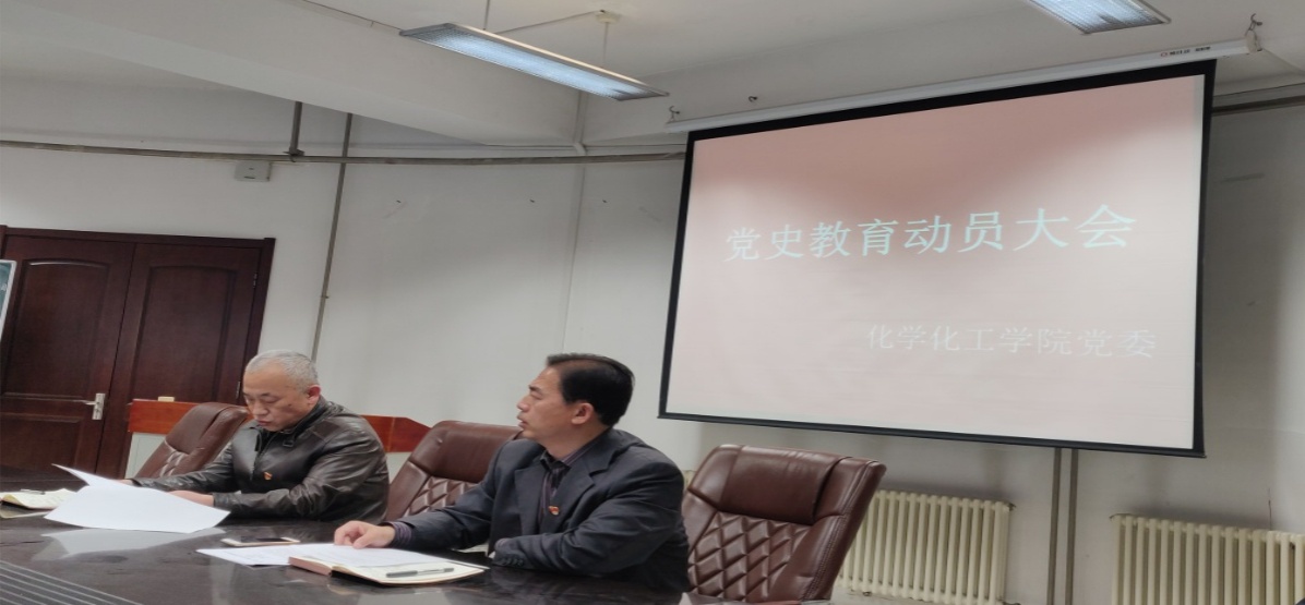 于3月26日下午14:00时在理化楼C401会议室召开党史学习教育动员大会。学院党委书记刘智广,党委副书记、院长王长生,党委副书记李金英,党委委员宫利东、金晶、徐可、石峰出席会议,学院全体党员教师、学生党员参加会议。院党委书记刘智广作动员讲话并主持会议。