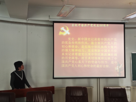 教工第一党支部书记迟玉贤同志,为支部党员上了一堂《学习党史国史,践行初心使命》的党课。
